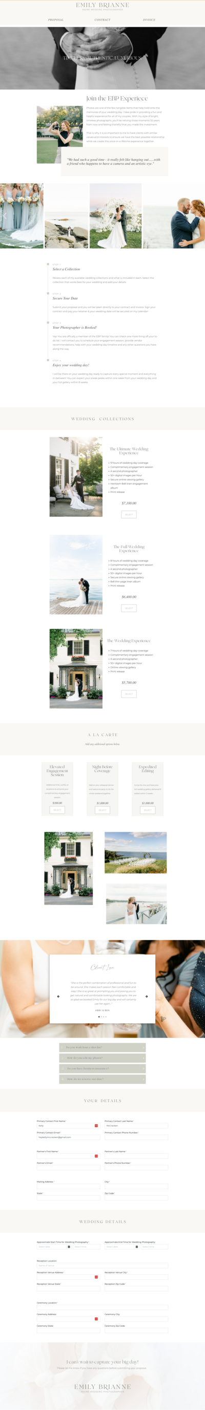 She reached out to us for a complete Dubsado setup, and we worked closely to understand her unique needs and business processes. Our goal was to transform her account into a seamless, automated system that retained a personal touch for her clients. In addition to streamlining her workflows, we also created beautiful proposal designs for each of her services. By the end of the project, Emily had a Dubsado system that not only saved her time but also provided a personalized experience for her clients.