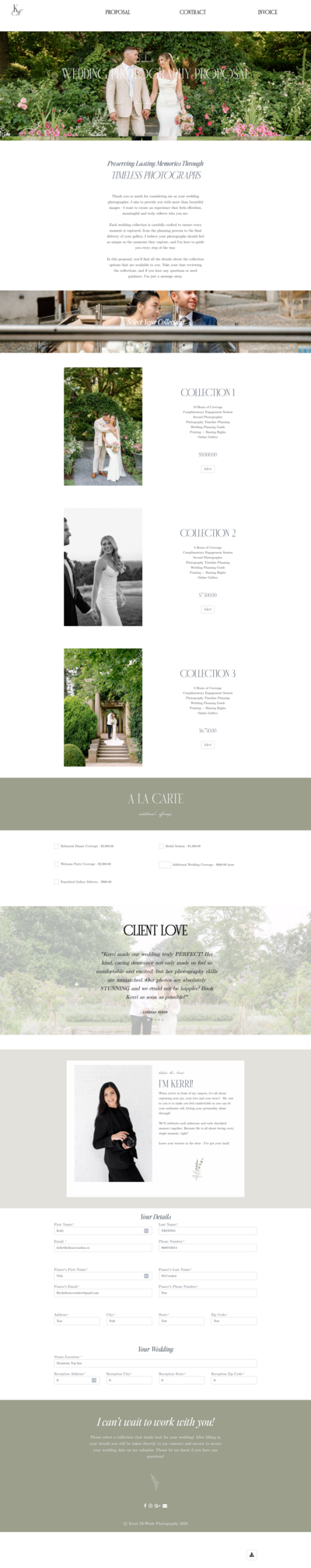 Kerri is an experienced Boston wedding and elopement photographer who wanted to refine her client experience and streamline her processes. After using Honeybook, she realized it wasn’t meeting her needs and decided to switch to Dubsado for a more efficient and seamless workflow. She wanted a setup that not only saved her time but also provided a polished, high-end experience for her couples.