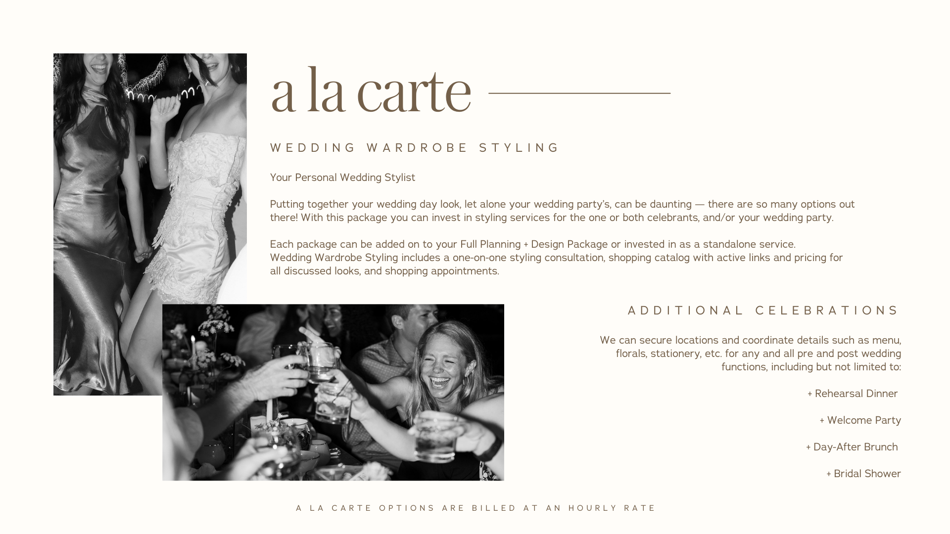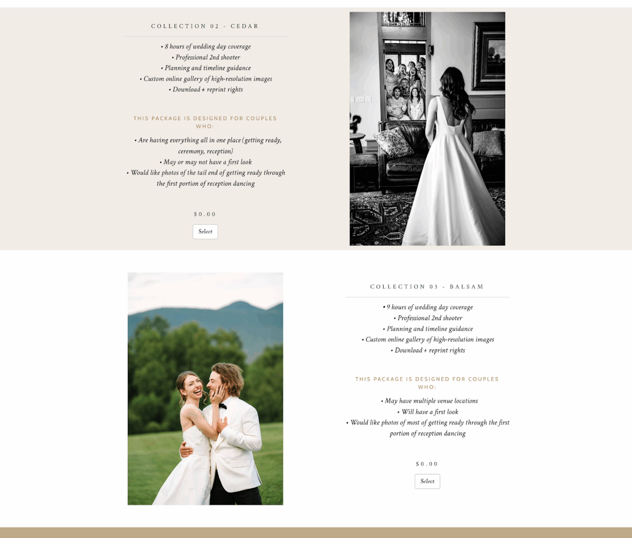 Christina had a beautiful custom webpage that she was customizing and then sending to her potential clients. Clients could see all that was included in their package and the package total. But what she was missing was not only the ability for the clients to finish booking but to CHOOSE customizations to that package.