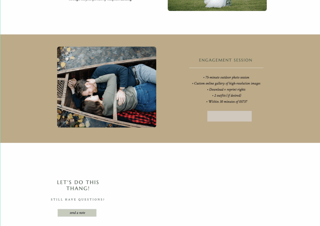 What if I told you that I could actually design a custom Dubsado proposal that looks almost identical to your custom Showit webpage but with the added benefit of your clients ability to select a package, submit their information for the contract and fully book without needing to email you with their acceptance?