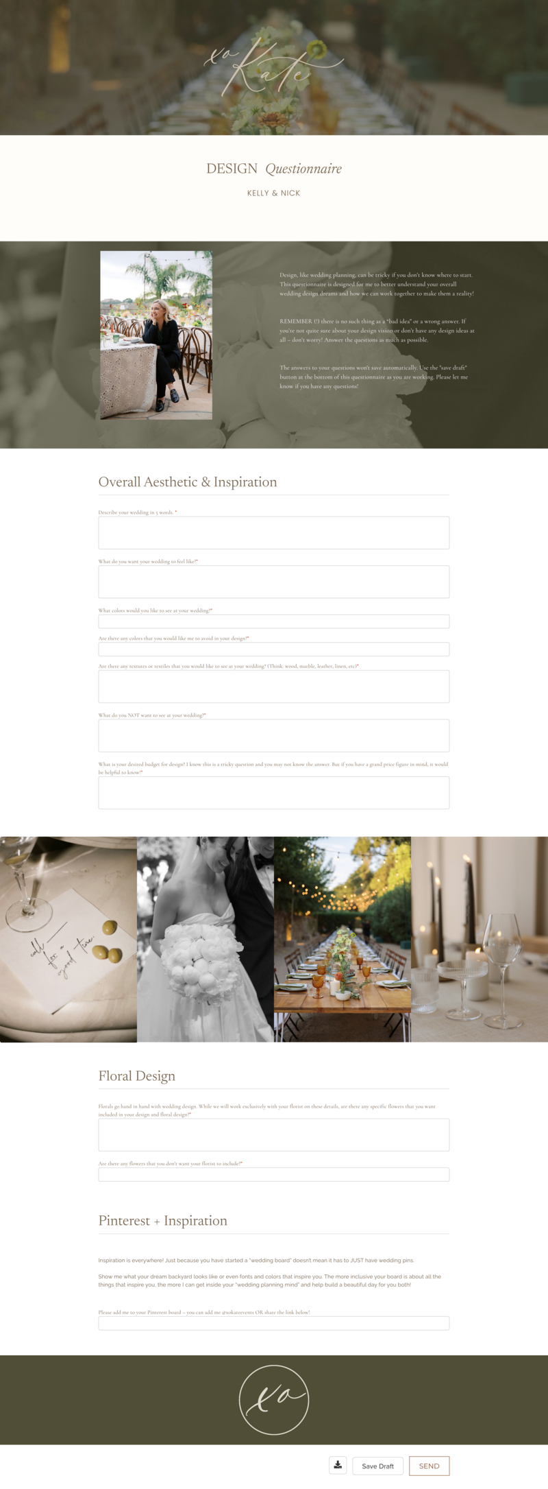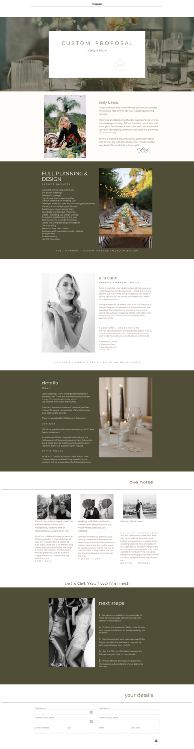 Kate came to me as she transitioned from Honeybook to Dubsado, looking for a more elevated and seamless experience for both her and her clients. She was booking high-end luxury events and needed a backend system that matched the level of service she was providing. Her existing setup didn’t reflect the polished, sophisticated brand she had built, and she wanted a better workflow that would support growth without sacrificing the client experience.